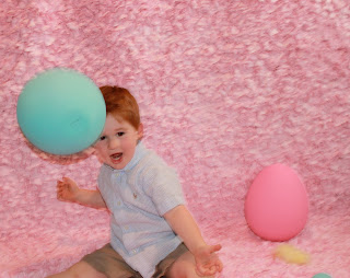 I Love doing "HOLIDAY" photo shoots. I use the photos around the house the following year and of course the grandparents get them... It usually takes a couple attempts/days before I get the photo I like and I have learned that photographing Sidney and Riley together is almost impossible. Here's what happens while I am trying to get the perfect shot... Dad gets in the picture, Sidney wants her Paci and Riley wants to throw the eggs and fool around.